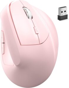 The Breakdown: This mouse proves that ergonomics doesn’t have to be boring. It packs the same core features as our top pick—a vertical design, dual-mode wireless, and a rechargeable battery—into a stylish pink chassis. It’s a fully capable device for combating wrist strain that also serves as a statement piece for a curated desk.